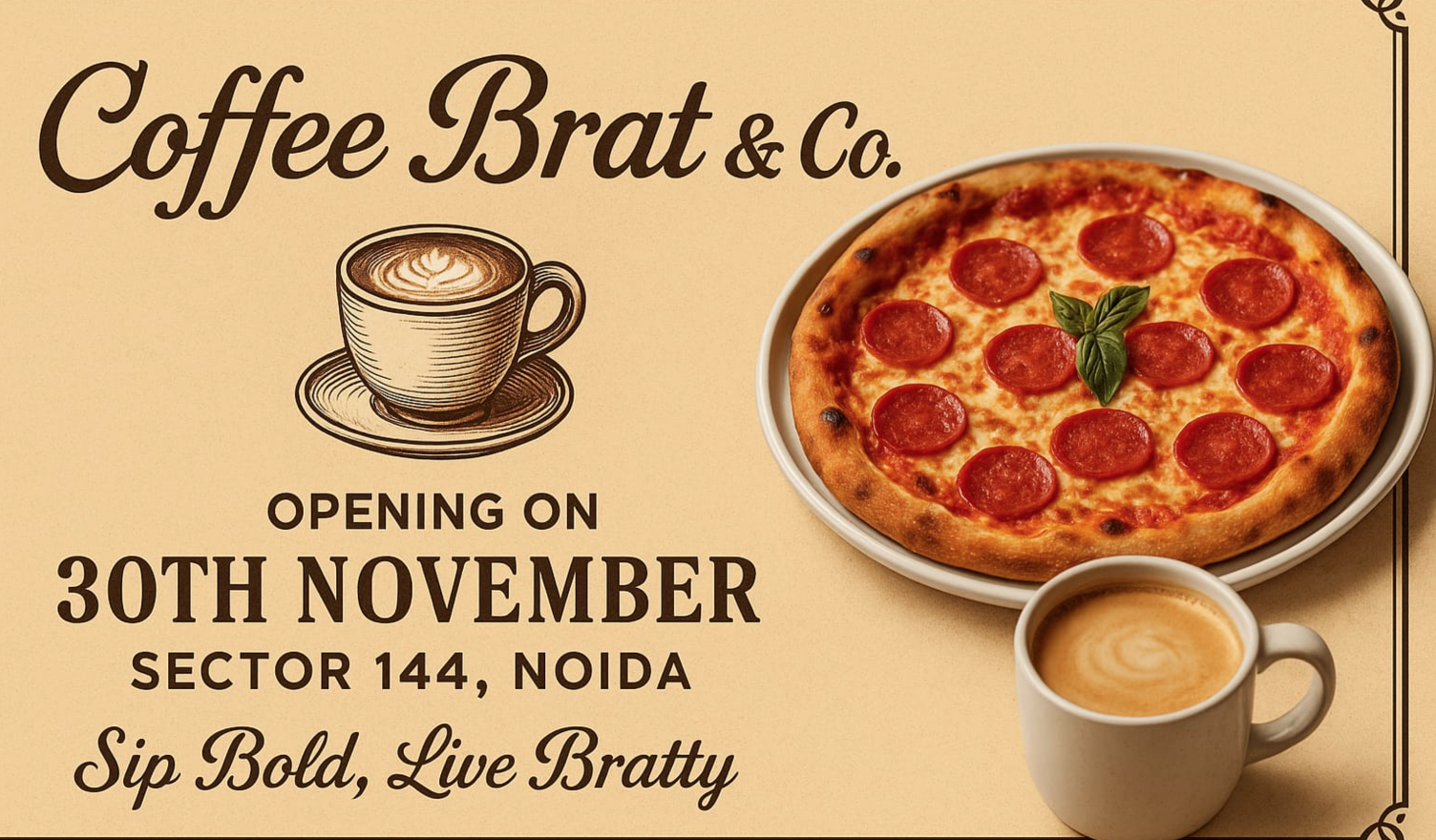 f you’re hunting for authentic Neapolitan pizza in Noida, your search ends at Coffee Brat. Equal parts bold, playful, and seriously delicious, Coffee Brat is not just a café—it’s a vibe. A place where wood-fired pizzas, premium coffee, and a little bit of attitude come together beautifully.